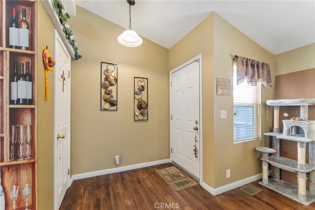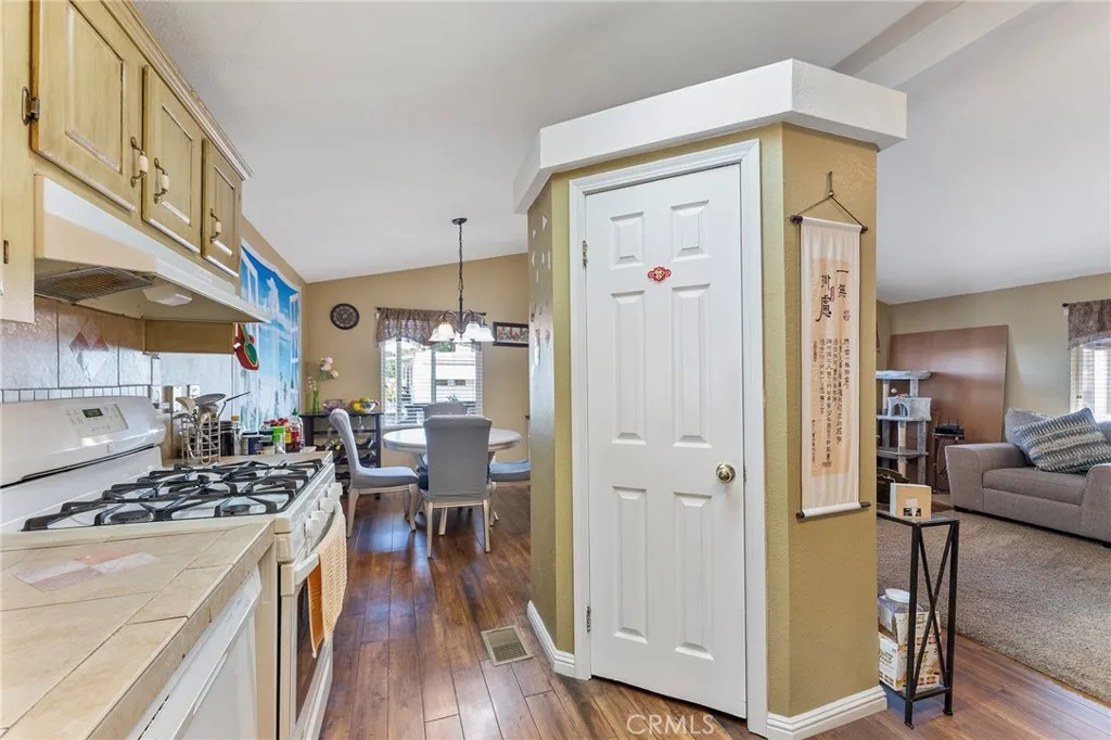 Welcome to Rancho Riverside! This beautiful, turn-key home exemplifies pride of ownership. The open and spacious floor plan features wood flooring in the living area, kitchen, and dining room. The updated kitchen includes ceramic countertops and a large built-in pantry. High-quality carpet adds comfort to the living area and all three bedrooms. Dual-pane windows with custom blinds provide energy efficiency throughout. Both bathrooms are full and have been tastefully updated with shower/tub combinations. The home also offers a convenient indoor laundry room. Enjoy relaxing evenings on the tiled front porch with custom railing. Located in a safely gated community, Rancho Riverside offers excellent amenities including a pool, spa, basketball court, billiard room, fitness center, and laundry facilities. Conveniently situated within walking distance of numerous stores and restaurants, this home also offers one of the lowest space rents in Riverside. Don't miss this exceptional opportunity to own a move-in ready home in one of the area's most desirable communities!