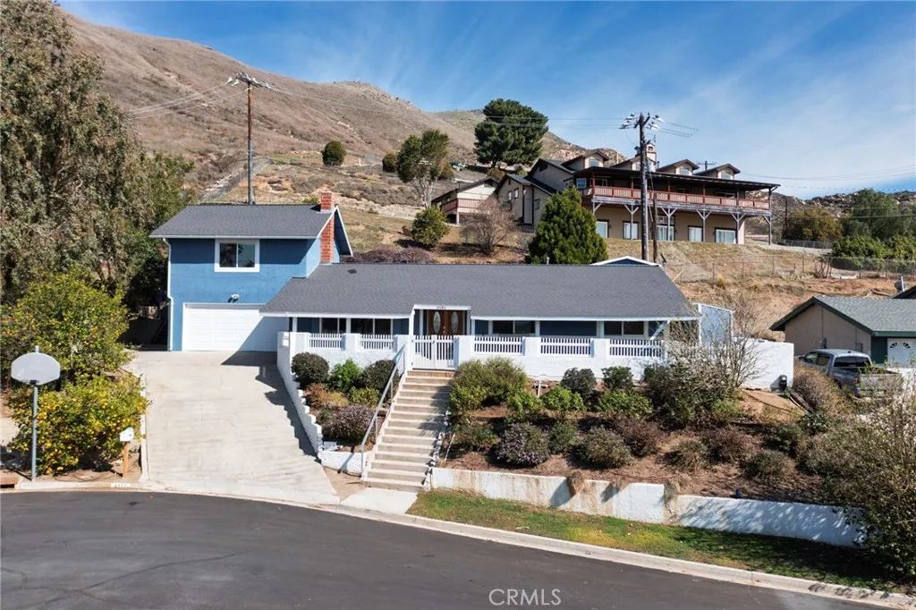 VIEW LOT - 3 BR, 1 3/4 BATHS, PLUS LARGE BONUS ROOM OVER GARAGE w/FULL BATH. A gardener's dream home with west-facing panoramic views overlooking the city. From the large covered front porch you can enjoy watching spectacular, colorful sunsets. The home sits atop a hillside with 11 mature, producing fruit trees, which include lemons, tangerines, limes, oranges, grapefruit, apricots, plums, and pomegranates. The backyard includes 2 raised garden beds and automatic dripper systems to the fruit trees and all the plants. Ample storage is available with 2 Separate Storage Buildings or Workshops. Attached 2-car garage. Above the garage, with a separate stairway entrance inside the garage, is an approx. 440 SF bonus room, with potential to be an ADU. The bonus room has a full bathroom, a separate sink, and a wardrobe closet. The front window of the bonus room offers exquisite, elevated views of the city. The house was extensively remodeled in 2012, and a new roof was installed in 2017. Included with the home are the washer & dryer, refrigerator, and 2 freezers. Nearby are numerous hiking and riding trails in the Norco Hills. Also nearby is Pikes Peak Park and the George Ingalls Equestrian Center.